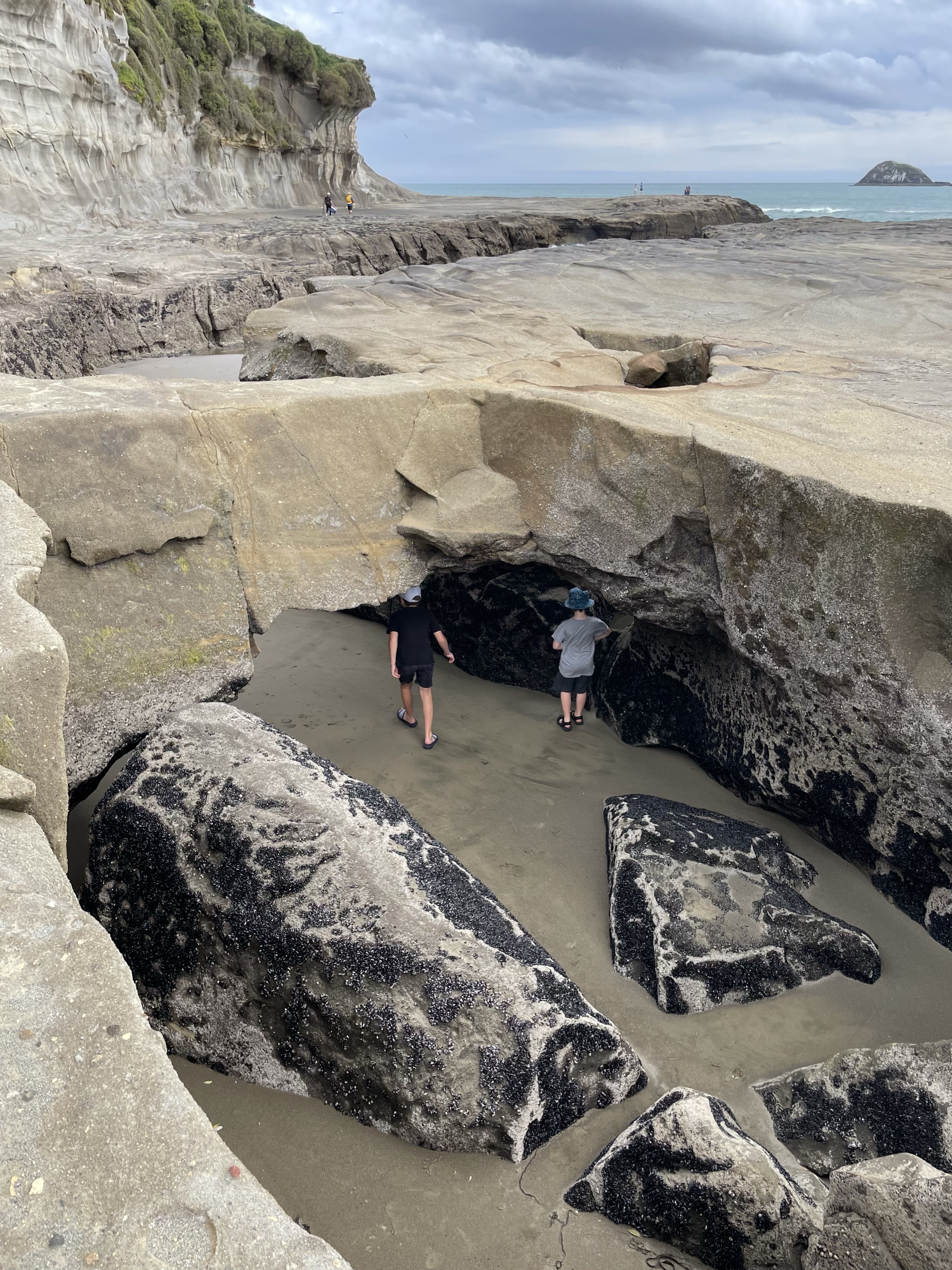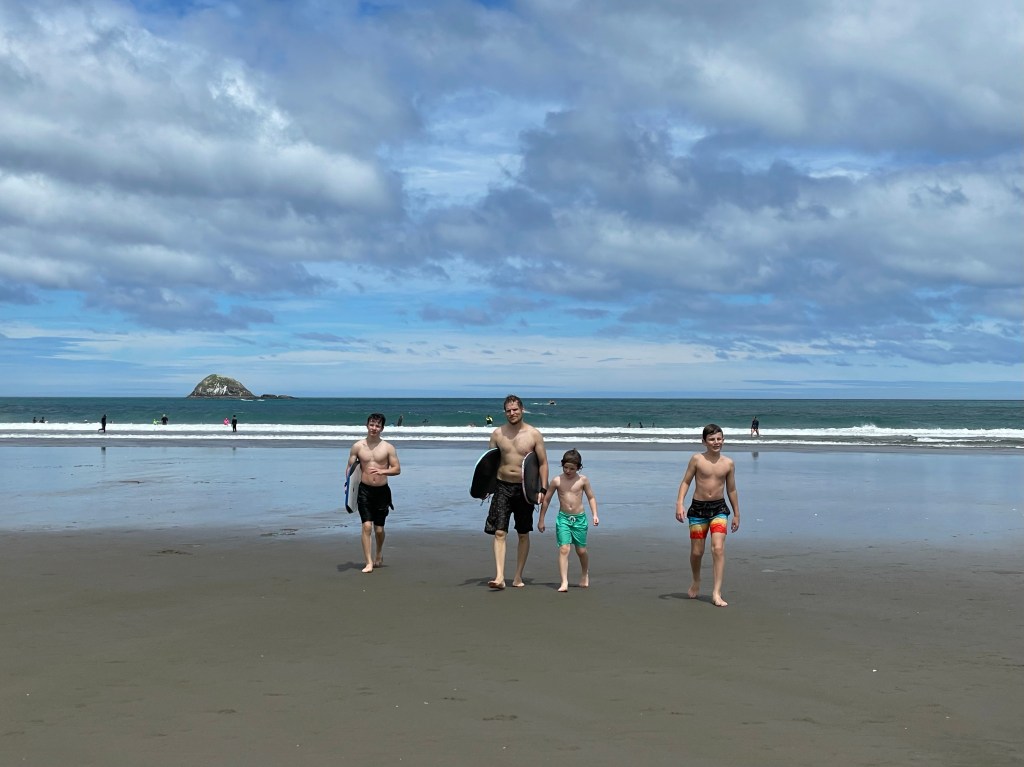 Det är mycket vi ska lära oss i vårt nya land. Som t.ex hur man badar på en sandstrand. För tredje gången körde vi igår till västkusten. Till ännu en lavastrand. De är ju helgrymma! Barnen hade just fått bodyboards och den ex-tropiska cyklonen Dovi var precis på väg in över landet så vågorna var magnifika! Barnen surfade glatt runt bland de andra barnen (som ju såklart såg betydligt proffsigare ut i sina våtdräkter och vågsurfingbrädor). Vi tyckte det var toppen tills en ganska sur våtdräktsklädd pappa upplyste oss om att vi plaskade runt mitt i en junior-surfing-tävling. Snopna drog vi oss bort till badvakternas utmarkerade badområde….