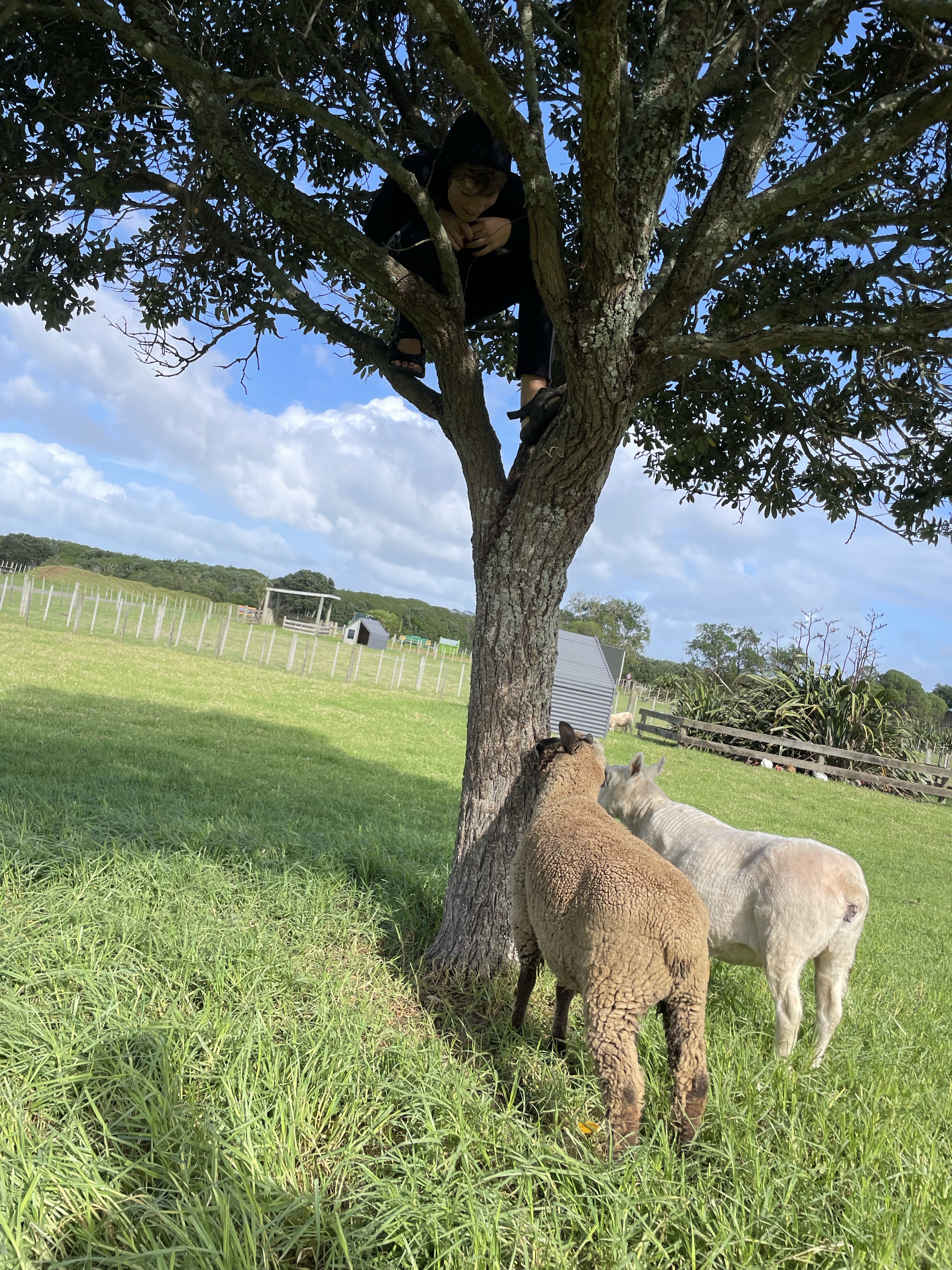 Bagglammet på högra bilden var så närgånget att Rufus tog sin tillflykt upp i ett träd.