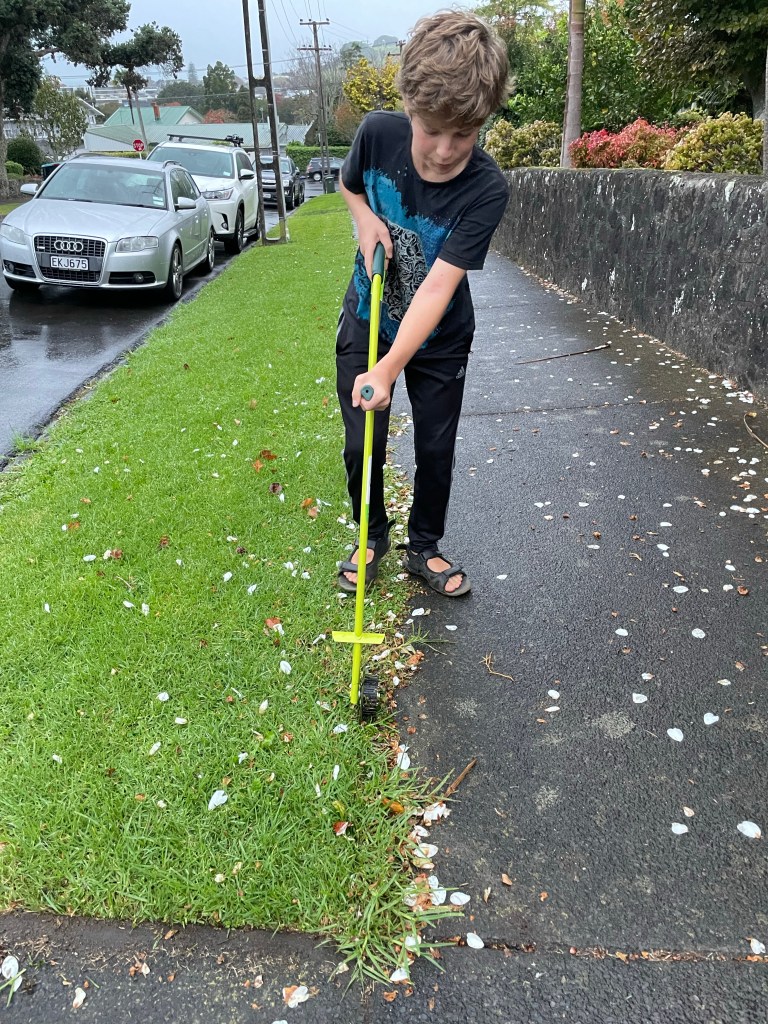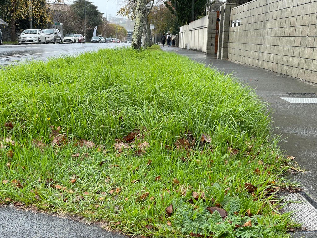 Vi gör vad vi kan för att tukta vår och försöker signalera att här bor minsann rekorderliga svenskar. Men fy vilket sjå, gräset växer ju som tusan och det regnar ständigt ner långa blad från våra cabbage trees och kamelior på trottoaren.