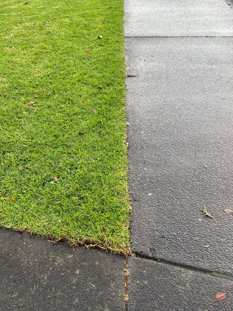 Bredvid oss ligger ett palatsliknande hus som nästan varje vecka har ett flertal trädgårdsmästare som ser efter trädgården och också de små gräsplättarna mellan muren och gatan. Kanterna är perfekt skurna, gräset är kort, grönt och tjockt.