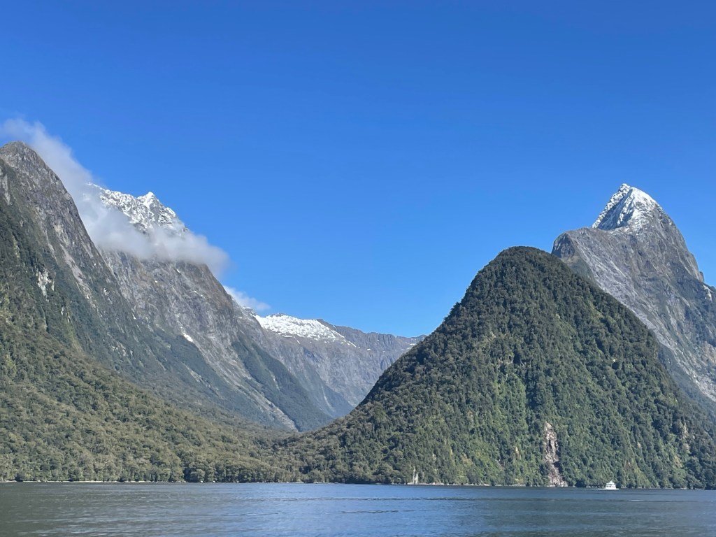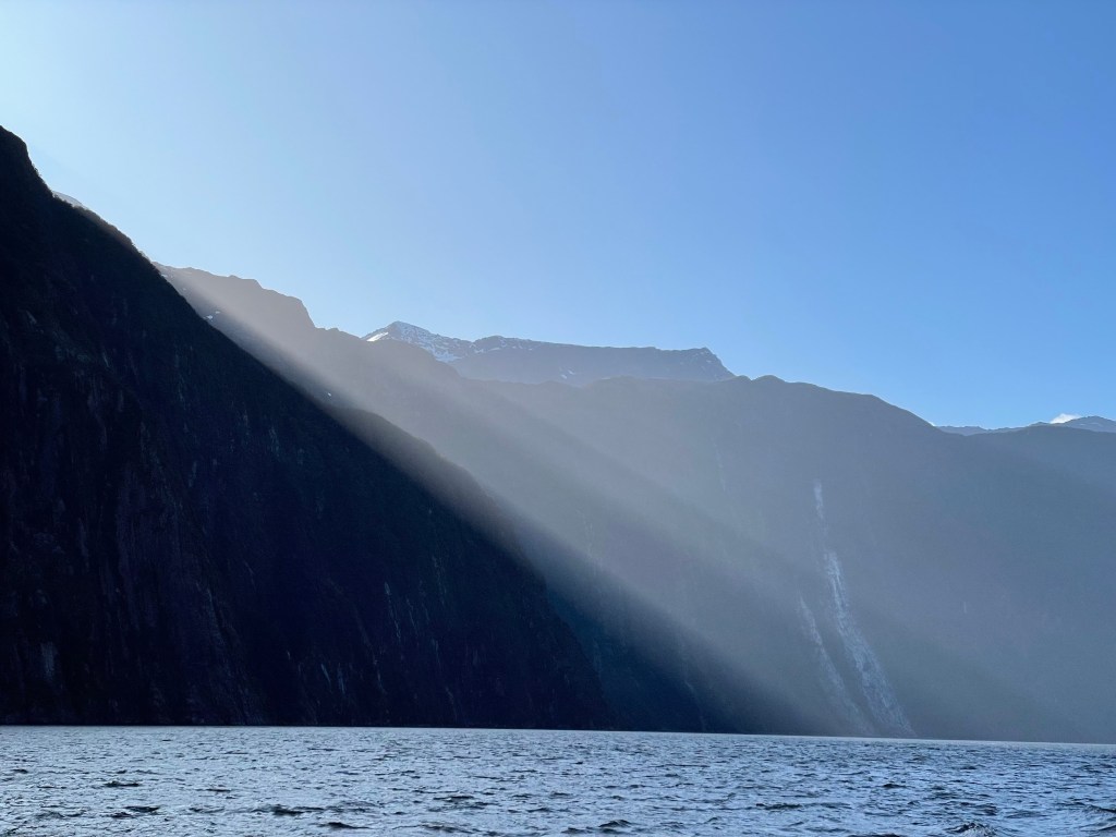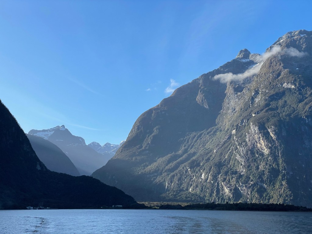 Fiordland heter den region som ligger längst sydväst på Sydön. Som namnet antyder finns flera fjordar. Pga de höga bergen regnar det mycket, 200 dagar per år med i genomsnitt 8m nederbörd per år. Vi lyckades pricka två soliga dagar och passade på att ta en båttur på både den mer avlägsna Doubtful Sound och den lite mer kända Milford Sound. Båda häftiga med många vattenfall som rinner utför de över 1200m höga bergen kring fjordarna.
