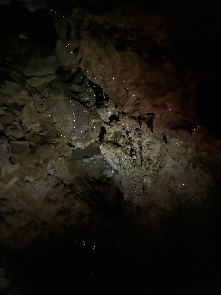 Vi är just hemkomna från en liten mellandagssemester i Northland (typ norra halvan av Nordön). På vägen upp passade vi på att besöka Abbey Caves, tre helt oexploaterade grottor som ligger mitt i ett jordbrukslandskap. Vi hann bara besöka Organ Cave som djupt nere i marken slingrade långt in i berget med en kall liten bäck som rann i botten. Den bjöd på fantastiska mineralformationer, spännande klättring och framförallt en hel massa lysmaskar!!