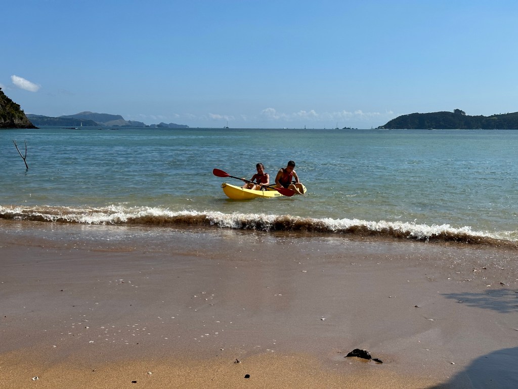 Vi har badat och snorklat lite. Vi har ätit glass i Russel och skaldjur i Paihia. Från vårt vandrarhem hade vi utsikt över Haruru Falls. Farmor Sigrid var med oss och hon åkte båttur kring bukten medan vi andra paddlade kajak.