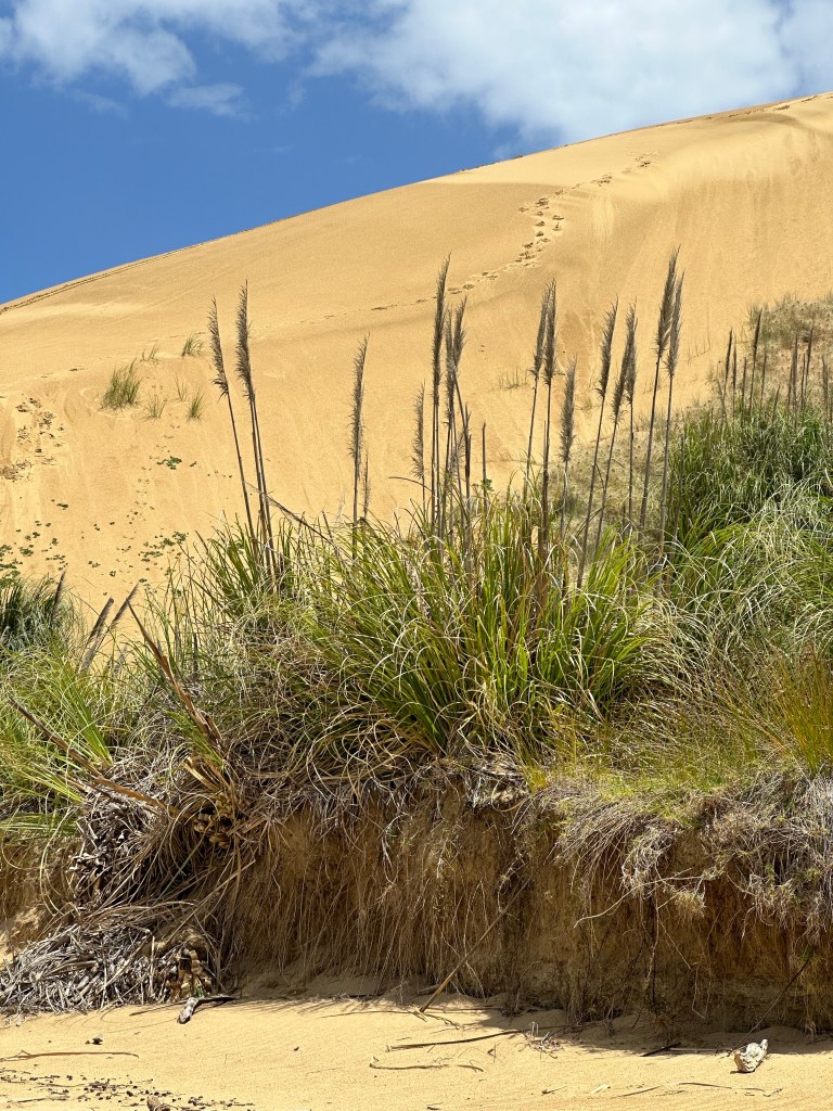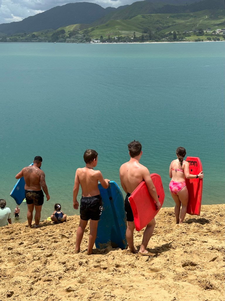 I Opononi kunde man ta en båt över till några enorma sanddyner på havsvikens/flodmynningens norra strand. Bodyboard ingick i båtbiljetten och sedan var det bara att kasta sig utför sanddynerna och glida vidare ut i vattnet. Pojkarna älskade det och till och med farmor testade ett åk i barnbacken.