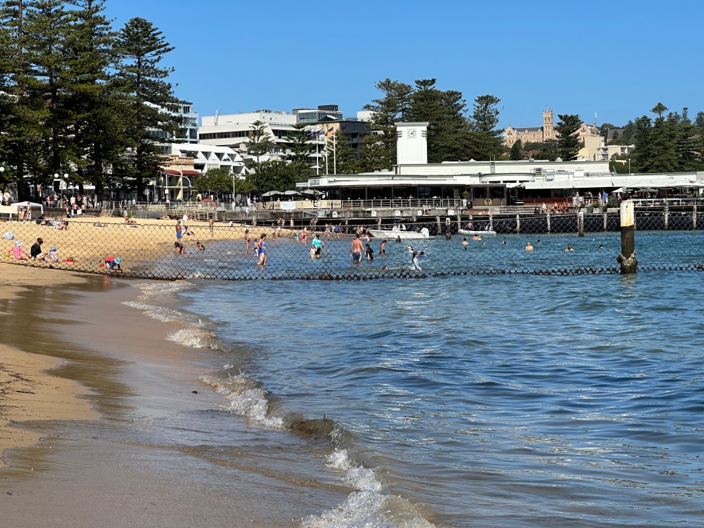 På Manly Cove Beach fanns hajnät. Eftersom ingen i Sydney dött i en hajattack sedan 1963 tog vi risken och badade utanför nätet.
